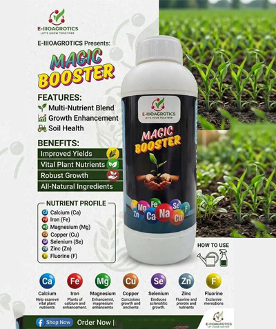 E-BIOAGROTICS is dedicated to promoting sustainable farming through innovative solutions in Organic, Horticulture, and Agriculture. We focus on improving soil health, increasing crop productivity, and supporting farmers with reliable and eco-friendly agricultural products. Our goal is to combine modern technology with natural farming practices to help farmers achieve better yields while protecting the environment. Through quality products and trusted support, we aim to contribute to the growth of a healthier and more sustainable agricultural future.
